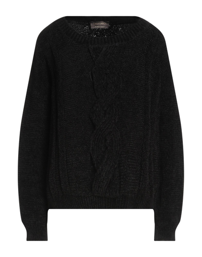 knitted, lightweight knit, no appliqués, solid color, round collar, long sleeves, no pockets , Color: Black , Size: XL
