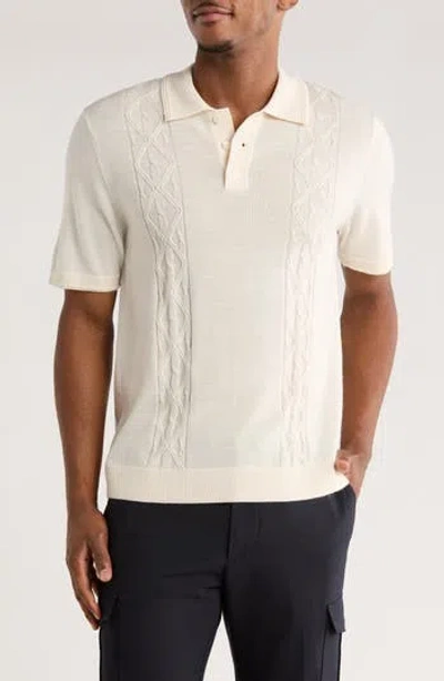 TRUTH Stitch Panel Wool Blend Polo In Neutral