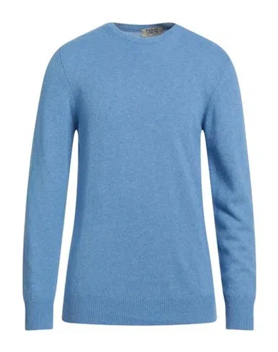 knitted, mélange, lightweight knit, no appliqués, solid color, round collar, long sleeves, unlined, no pockets , Color: Pastel blue , Size: 3XL