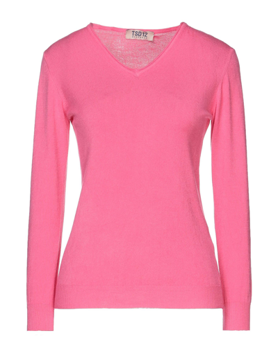 knitted, no appliqués, solid color, v-neck, long sleeves, no pockets, lightweight knit , Color: Pink , Size: XL