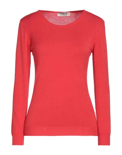 knitted, lightweight knit, no appliqués, solid color, round collar, long sleeves, no pockets , Color: Red , Size: XXL