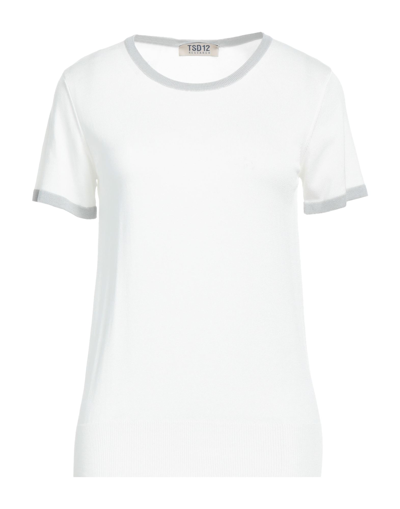 knitted, lightweight knit, two-tone, round collar, short sleeves, no pockets, no appliqués , Color: White , Size: XXL