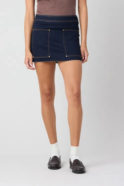 The Danielle Skirt sits low on the hips, finished with bold contrast stitching and clean lines for an effortless statement. Low-rise fit Four-pocket style Side zipper Contrast stitching 73% Cotton, 24% Poly, 3% Rayon Machine wash, tumble dry