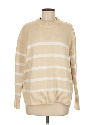 Tuckernuck Pullover Sweater, Size: Medium. Item Details: Tan, Stripes Pattern, Mock Neckline, Long Sleeve, Women's Tops, Cotton/Cashmere