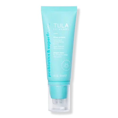 FILTER PRIMER SUPERSIZE MAGIC HOUR. Benefits: Provides sheer coverage & a lit-from-within glow. Blurs the look of pores & fine lines. Instantly smooths skin. Hydrates skin. Primes skin for makeup. Helps even out the look of skin over time. Key Ingredients: S6Pro Complex: US patent pending super six blend of prebiotics & probiotic extracts to help improve skin smoothness & maintain skin balance. Licorice: helps even the look of skin tone over time. Rosemary & Chamomile: helps visibly soothe skin *only available in Luna shade. Chia seeds: help nourish & condition skin *only available in Sunrise Shade. Butterfly Bush: reduces the look of dark spots *only available in Magic Hour & Sunrise shades. Contains milk proteins.. Does not contain live cultures.. Research Results: Clinically proven to provide hydration*. 96% agreed their foundation goes on smoother/more evenly**. 93% agreed skin looks more even-toned**. 93% agreed skin looks & feels smoother**. *Instrumental test on 121 subjects during 4 weeks. **Self assessment on 122 subjects after 1 use.