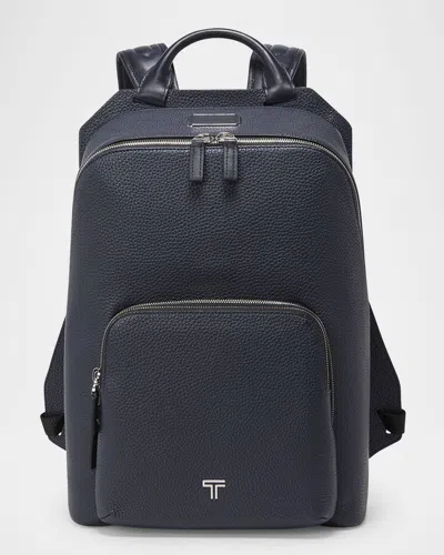 Tumi "Davide" structured backpack in calf leather Top handle Adjustable shoulder straps Twoway zip top closure Exterior, twoway zip pouch and back slip Lining: Polyester Approx. 16.8"H x 11.6"W x 6"D Item Weight (Lbs.): 4.0 Spot clean Made in Italy