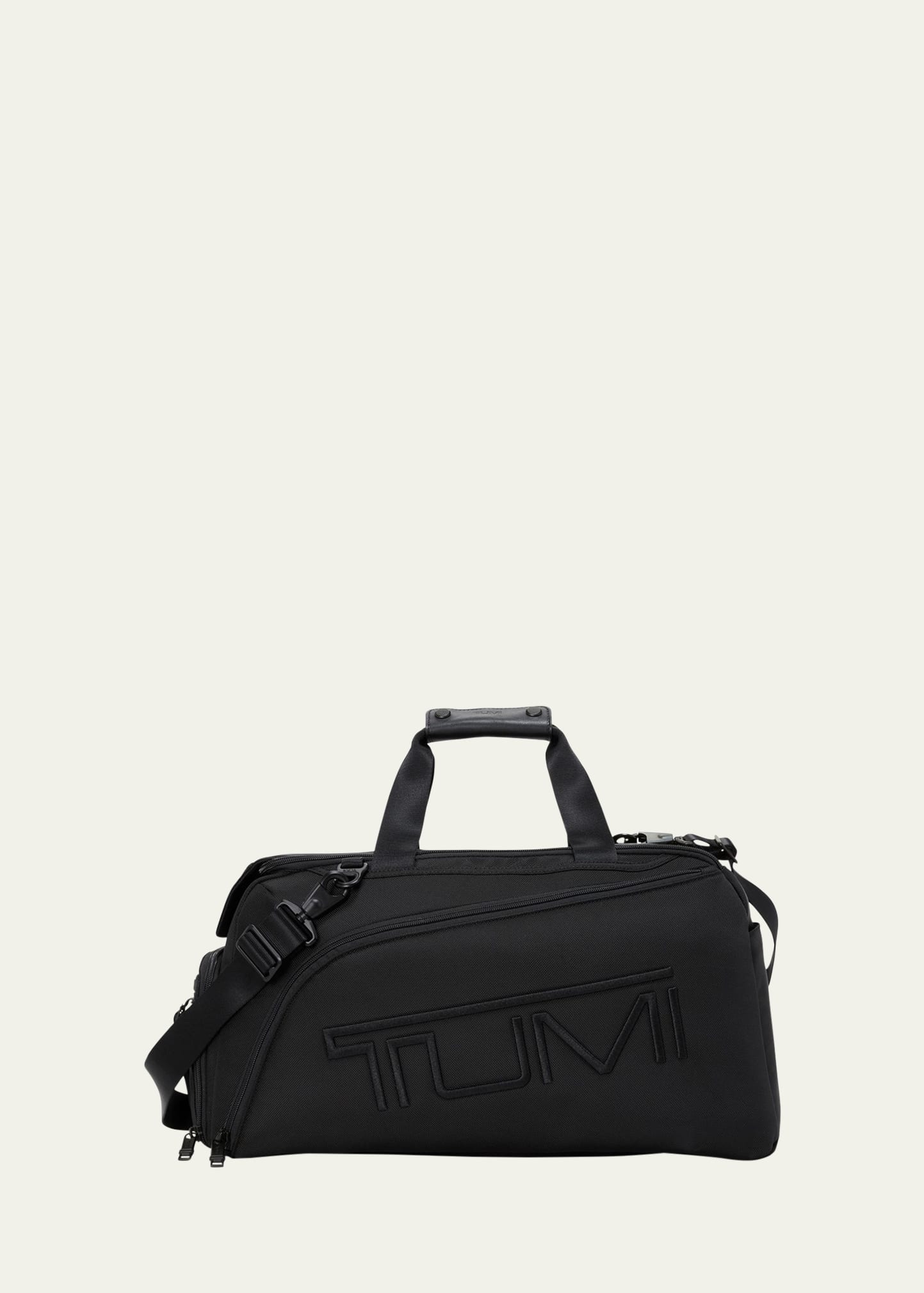 Hit the green with a bag personalized to your game. Choose to carry it as a duffel or backpack. Duffel bag crafted from Ballistic Nylon and calf leather Zip to main compartment Top opening flap Front angled zip pocket; rear angled zip pocket Straight zip side pocket Side U-zippered shoe pocket with water-resistant lining Rear slip pocket Bottom panel pocket for backpack straps and locker loop Padded and adjustable tuck-away backpack straps with D rings to attach Padded adjustable and removabl...