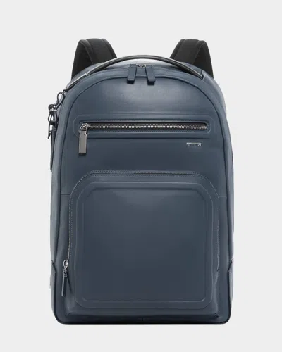 Carry your work and travel essentials, including up to a 16" laptop, in this practical and refined leather backpack. It features elevated finishes inside and out, including embossed leather accents. Adjustable padded backpack straps Leather top handle Dualzip entry to main compartment Front Uzip pocket Front straightzip pocket Back padded laptop compartment with zip closure Back slip pocket with magnetic snap closure Back luggage sleeve Laptop compartment fits up to a 15" PC or 16" MacBook® Interior padded tablet pocket Interior zip pocket Three interior open pockets Two interior card pockets and pen loops Interior key leash Equipped with TUMI Tracer® for tracking lost bags Approx. 17"H x 12"W x 5"D Item Weight (Lbs.): 3.7 Spot clean Imported