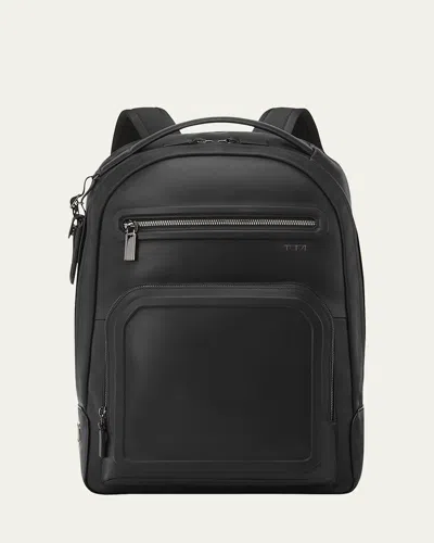 Carry your work and travel essentials, including up to a 16" laptop, in this practical and refined leather backpack. It features elevated finishes inside and out, including embossed leather accents. Adjustable padded backpack straps Leather top handle Dualzip entry to main compartment Front Uzip pocket Front straightzip pocket Back padded laptop compartment with zip closure Back slip pocket with magnetic snap closure Back luggage sleeve Laptop compartment fits up to a 15" PC or 16" MacBook® Interior padded tablet pocket Interior zip pocket Three interior open pockets Two interior card pockets and pen loops Interior key leash Equipped with TUMI Tracer® for tracking lost bags Approx. 17"H x 12"W x 5"D Item Weight (Lbs.): 3.7 Spot clean Imported