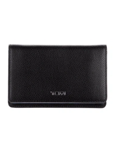 Tumi Compact Wallet Black Leather Silver-Tone Hardware Single Exterior Pocket Leather Lining & Dual Interior Pockets with Card Slots Snap Closure Includes Box Unfortunately, due to restrictions, this item may not be eligible for shipping in all areas. | Tumi Leather Compact Wallet in Black