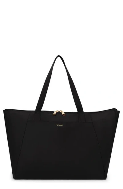 A spacious tote crafted from durable nylon packs neatly into a compact zip-top pouch—perfect to slip into your suitcase or backpack as a spare bag. A smart add-a-bag strap means you can easily attach it to the handle of a rolling suitcase for added convenience. 19" x 12" x 6 1/2" 0.7 lb. Two-way top-zip closure Shoulder straps Exterior slip pocket; Add-A-Bag strap Removable zip-top pouch Lined Nylon Imported