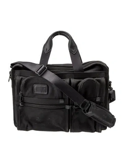 Tumi Messenger Bag Black Tonal Hardware Leather Trim Single Adjustable Shoulder Strap Leather Trim Embellishment & Five Exterior Pockets Nylon Lining & Dual Interior Pockets Zip Closures at Front & Top | Tumi Messenger Bag in Black