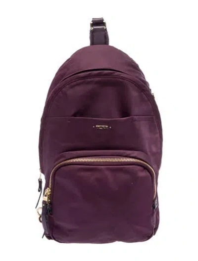 Tumi Backpack Purple Nylon Gold-Tone Hardware Single Adjustable Shoulder Strap Dual Exterior Pockets Nylon Lining & Dual Interior Pockets Zip Closure at Front | Tumi Nylon Backpack in Purple