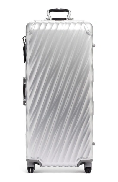 This trunk boasts a modern, fluid-looking hard shell while the interior is like a portable closet, making it ideal for long trips or for two-person travel.Closure: Center latch with clasp; two TSA-integrated combination locks with push button to open.Exterior features: Two-stage telescoping handle system with push button; retractable leather-wrapped top and side carry handles; four dual spinner wheels provide easy movement through airports and hotel lobbies; protective bumpers and four side feet help protect against dings and scratches.Interior features: Shelves, compression straps and zip curtains on front and back compartments allow for easy organization of your clothes, shoes and accessories.Special features: This bag includes Tumi Tracer®, an exclusive, complimentary program that helps reunite lost or stolen bags with their rightful owners using a one-of-a-kind 20-digit number affixed to the bag.