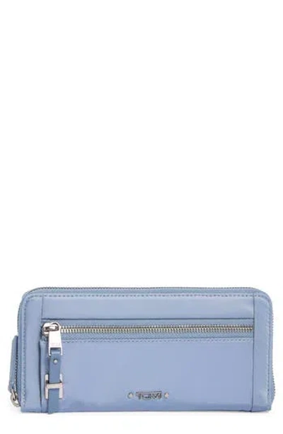 About The Brand: State-Of-The-Art Luggage To Get You There In Style. Color/Material: Cornflower Nylon And Leather Design Details: Single Zip Closure Into Main Compartment 1 - Front Zipper Pocket W/ Metal Hasp Detail 1 - Back Exterior Slip Pocket W/ Leather Binding Tumi Metal Logo With 2 Flat Dot Detailing Interior Design Details: 12 - Card Pockets 2 - Slip Pockets 3 Gusseted Compartments 1 - Zipper Pocket Tumi Foil Logo Measures 7.75In Wide X 3.75In High X 1In Deep Zipper Closure Imported Please Note: All Measurements Were Taken By Hand And Are Approximate; Slight Variations May Occur.