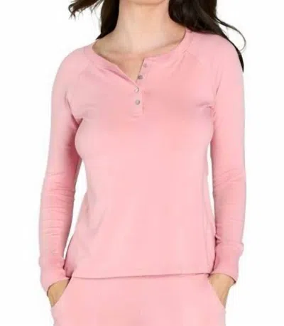 Olivia Long Sleeve Henley Tee In Silky Rose