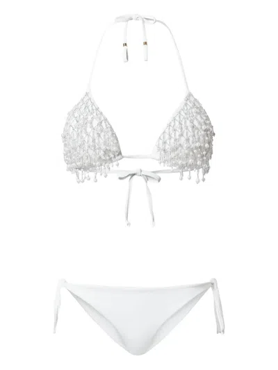 TWINSET Beaded Triangle Bikini Set In White