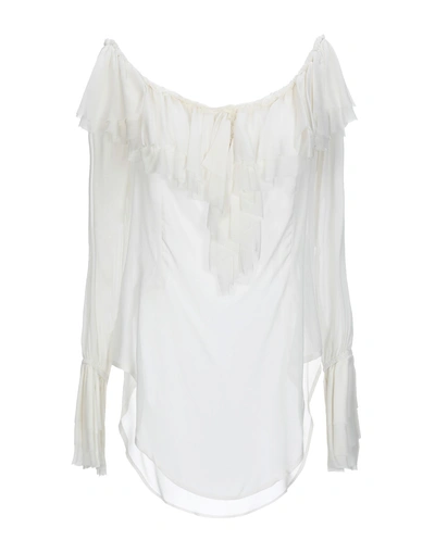 CrepeRufflesLogoBasic solid colorLong sleevesWide necklineNo pockets , Color: Ivory , Size: 8
