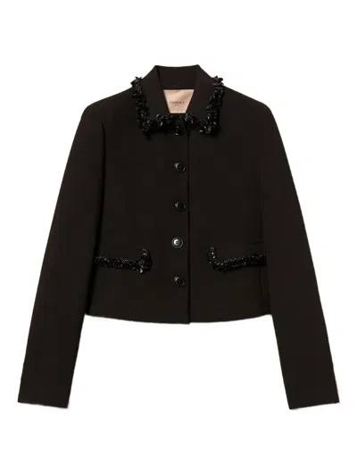 TWINSET Cropped Tailored Jacket With Decorative Embellishments In Black