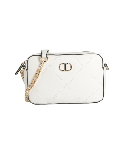 TWINSET Handbags. medium, coated fabric, brand logo, solid color, fully lined, zipper closure, daytime, camera bag. 100% Polyurethane