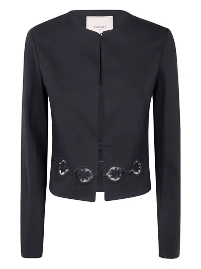 Introducing the 'JACKET' from TWINSET, a quintessential piece in the outerwear category. Crafted from a luxurious blend of 68% Viscose, 27% Polyamide, and 5% Elastane, this stunning black jacket is made in China and embodies elegance. With its sleek design and unique details, it offers both style and functionality. Ideal for evening outings or sophisticated gatherings, it enhances your wardrobe with an air of exclusivity. Embrace the versatility of this timeless piece, perfect for a modern lifestyle. Elevate your look with this exquisite outerwear essential.