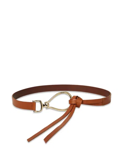 warm brown gold-tone hardware knot embellishment adjustable fastening sleek design decorative tails