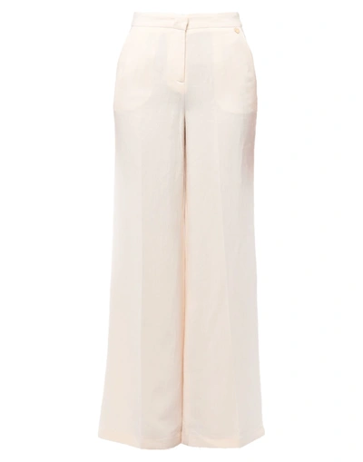 TWINSET Pants. twill, solid color, brand logo, high waisted, regular fit, wide leg, hook-and-bar, zip, two pockets. 73% Viscose, 27% Linen