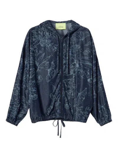 navy blue front zip fastening two side slit pockets drawstring hood drawstring hem