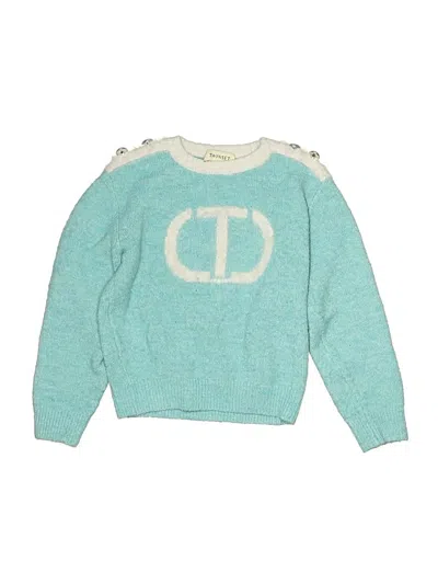 Twinset Pullover Sweater, Size: 8. Item Details: Teal, Crew Neck, Long Sleeve, Glitter, Girls Tops