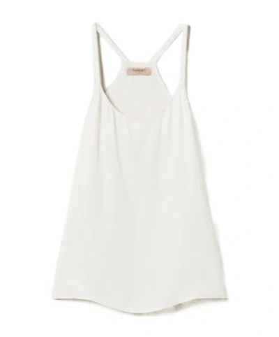 TWINSET Thin Strap Satin Top In White