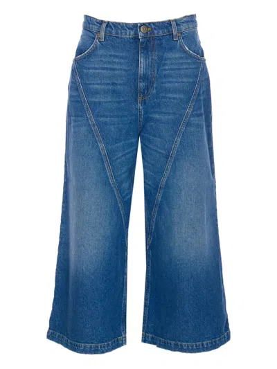 TWINSET Wide Leg Jeans Contrast Stitching In Blue