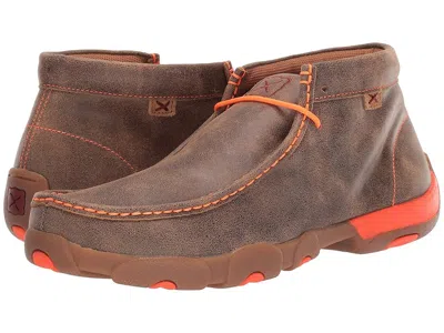 Twisted X MDM0019 - Men's Boots : Bomber/Neon Orange : The Twisted X® MDM0019 chukka driving mocs will see you through the day in total style and comfort. ; Handcrafted driving moc is made of genuine full grain leather. ; Rounded-toe loafer style. ; Cushioned collar and tongue for added comfort. ; Breathable mesh lining. ; Removable, moisture-wicking, molded footbed is washable, providing an odor-free foot environment and all-day comfort. ; Molded rubber outsole for reliable grip. ; Imported. Measurements: ; Weight: 1 lb 1.5 oz ; Product measurements were taken using size 11, width M. Please note that measurements may vary by size. | Twisted X MDM0019 Men's Boots Bomber/Neon Orange : 12 W, Leather