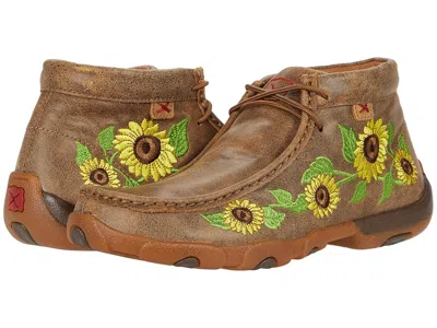 Twisted X WDM0128 - Women's Shoes : Bomber/Sunflower : The Twisted X WDM0128 chukka driving moc shoes have a clean, streamlined silhouette with a beautiful embroidered sunflower design at the side. This lace-up moc-toe chukka is will have you stepping out into the season in total style! ; Lightly distressed leather upper. ; Lace-tie closure for a secure fit. ; Cushioned collar provides long-lasting comfort. ; Breathable textile lining for a comfortable foot environment. ; Removable, moisture-wicking, molded SD footbed is washable, providing an odor-free foot environment and all-day comfort. ; Includes composite XD insole offers excellent support and stability. ; Rounded moc toe. ; Molded rubber outsole is slip resistant and provides excellent traction. ; Imported. Measurements: ; Weight: 13 oz ; Product measurements were taken using size 8.5, width M. Please note that measurements may vary by size. | Twisted X WDM0128 Women's Shoes Bomber/Sunflower : 8.5 M, Leather