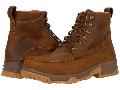 Twisted X Work MXCC001 - Men's Shoes : Distressed Saddle : The Twisted X MXCC001 Lace-Up Composite Toe Boot has the ideal combination of safety protection, interior support, and reliable outsole slip resistance to keep you comfortable and confident every workday. ; Lace-up, moc toe work boot with a lightweight composite safety toe that meets or exceeds ANSI standards ASTM F2413-18 M/I/C MT EH (Electrical Hazard) safety standards. ; Sloped heel kick offers a more comfortable transition from the heel to the ball of foot. ; Cushioned collar and tongue for added comfort. ; Oiled full grain leather upper provides long-lasting durability. ; Nylon and glass fiber shank provides lightweight support and stability. ; Traditional lace-up style with fabric laces and sturdy metal eyelets. ; Breathable mesh lining. ; Removable, moisture-wicking, machine washable molded footbed. ; Compression-molded EVA midsole integrated with Twisted X's patented CellStretch comfort technology for long-lasting underfoot support and comfortable shock absorption. ; Molded rubber outsole is oil and slip resistant that meets ASTM F1677-05 standard. ; Imported. Measurements: ; Weight: 1 lb 10 oz ; Shaft: 5 1 2 in ; Product measurements were taken using size 8.5, width M. Please note that measurements may vary by size. | Twisted X Work MXCC001 Men's Shoes Distressed Saddle : 10.5 W, Leather