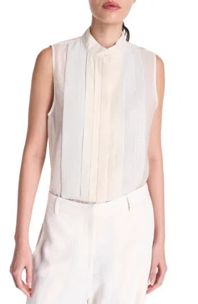 TWP "Adele" semisheer blouse features a sequinembellished bib Approx. 24.8"L from shoulder to hem High neckline Sleeveless Yoked back Hip length Relaxed fit Button front closure Viscose/linen Dry clean Made in Italy