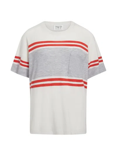 TWP Engineered Stripe Cashmere T-shirt In Gray