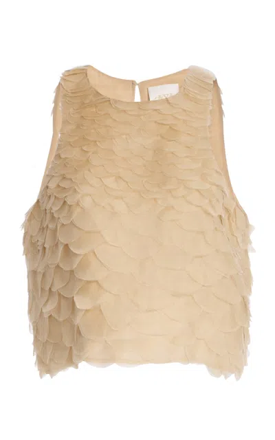 TWP Fishscale Shell Embellished Silk Top In Khaki
