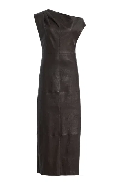 Like a best-kept secret among the fashion savvy; TWP has spread only by word of mouth. “It’s the insider resource for wardrobing: tailored pants and shirting from Italian fabrics at unbeatable price points. The type of brand you’ll be so pleased you discovered—and your friends will thank you too; says LSD. Fitted; midi dress with one off the shoulder detail crafted in a supple stretch leather