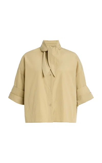 Like a best-kept secret among the fashion savvy; TWP has spread only by word of mouth. “It’s the insider resource for wardrobing: tailored pants and shirting from Italian fabrics at unbeatable price points. The type of brand you’ll be so pleased you discovered—and your friends will thank you too; says LSD.Cropped; short sleeved button down in cotton poplin. Boxy silhouette. Complete with a tie detail; button up placket; and our signature double roll button cuffs.