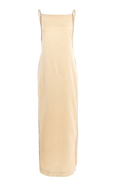 Like a best-kept secret among the fashion savvy; TWP has spread only by word of mouth. “It’s the insider resource for wardrobing: tailored pants and shirting from Italian fabrics at unbeatable price points. The type of brand you’ll be so pleased you discovered—and your friends will thank you too; says LSD. Floor length gown in shiny viscose satin. This fabric has a silky sheen. It Had To Be You is a column silhouette; slim; elongated with an open back. Complete with embellished crystal straps and trim; cowl back and side slit.