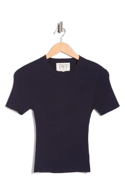 TWP Tease Rib Knit Short Sleeve Top In Blue