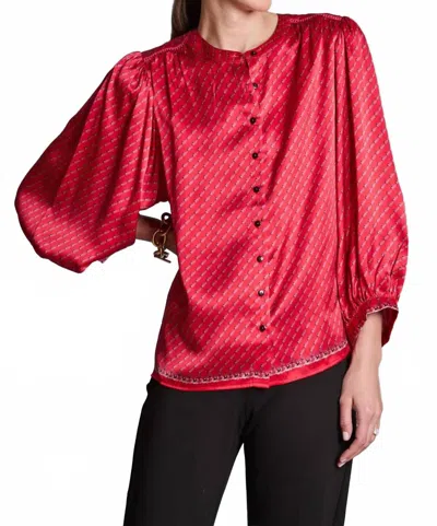 TYLER BOE Carrie Silk Charmeuse Button Top In Red
