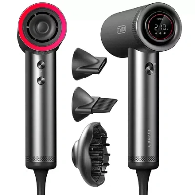 What it DoesThe TYMO AirHype HC601S aluminum high-speed professional hair dryer has a 110,000-rpm brushless, quiet motor that provides strong airflow resulting in drying time as quick as 5 minutes. It has a compact and lightweight (15oz) design and includes three snap on magnetic attachments for multiple styling methods and a travel bag.How to Use (1) Make sure that your hands are completely dry before connecting the appliance to the mains.(2) Connect the hair dryer and push the power button. The hair dryer will start operating normally.(3) Adjust the temperature and air flow speed setting to best meet your needs. The display screen indicates which settings you are using.Features1.Fast Drying TimeProfessional hair dryer features a powerful 110,000-rpm brushless digital motor with 23m/s air speed resulting in an ultra fast drying experience.2.Three Air Flow Speed SettingsThe TYMO hair dryer allows you to customize your drying experience with fast, medium, and gentle precise speeds.|3.Three Styling Magnetic Attachments For Different Hair TypesIncludes an adjustable diffuser (prongs up to reach the root for volumizing and prongs down for curl drying); a smoothing nozzle; and a comb nozzle.4.T-sensor Smart Temperature Control Protects Hair From Heat DamageThe T-sensor monitors the heat output 200 times/s to provide even and precise heat, reducing the risk of hair damage.5.Led Hd Display With Four Precise Temperature OptionsAdjustable heat settings available are room temperature/140â/180â/210â.6.Quiet Operation69dB low noise for a peaceful styling experience.7.Millions (50m+) Of Negative Ions Produced For Reduced Frizz And Silky HairSalon quality finish every time.8.Lightweight And ErgonomicThe TYMO hair dryer is just over 1lb and has an ergonomic handle design for ease of use.9.One Button CoolingEasily switch to cold air setting with one button. When the hair dryer is on cold air mode, the operating temperature will be at room temperature and 80â with snoflake icon will show on the display. Also, it can be restored to the original mode by switching the ON button.10.Automatic CleaningThe Airhype is equipped with a cleaning function for the internal parts. Turn the power switch ON, then to OFF. Press and hold the airflow control switch for more than 5 seconds. The cleaning function will be on for 8 seconds and then the hair dryer will automatically shut down.# of Heat Settings: 4Number of Speeds: 3Wattage (watts): 1600wMaximum Temp (f): 200 Degrees FCountry of Origin: Imported