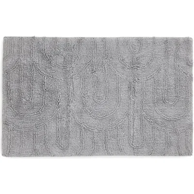 A curvaceous U-shaped design inspired by the brand's logo subtly textures this bath rug curtain in a mellow hue that complements your bathroom's spa-like decor. 21" x 34" 100% cotton Machine wash, dry flat Imported