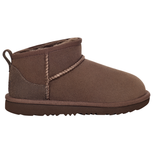 Burnt Cedar Classic Ultra Mini boots from UGG Kids feature a sheepskin upper (17 mm) and a lower bootleg (8. 9 cm) for ease of fit and versatility. Pre-treated to maintain its aesthetic for longer, this Classic model has all the features of the original that kids appreciate most: classic sheepskin lining (17 mm), super-soft UGGplush insole and an ultra-light, flexible sole designed for all-day play. This product sits on a SugarSole sole, made from a responsible sugarcane foam compound, which allows us to reduce our dependence on fossil fuels by replacing petroleum-based ethylene, or on a Treadlite by UGG sole. Topical application of water-repellent treatment. Asymmetric upper edge, overlock stitching, back pull, suede heel counter. Insole in UGGplush, 80% regenerated wool and 20% lyocell (17 mm) or insole in UGGplush , 60% regenerated wool and 40% lyocell (17 mm). Treadlite by UGG outsole for maximum comfort or EVA SugarSole. Fabric edging made of 100% recycled polyester fibres. Fabric label with UGG logo. This product is made from genuine sheep or lamb fur. Fur from Australia, Ireland, the United Kingdom or the United States. Artificially treated and dyed. Composition: 100% Leather, 100% Wool