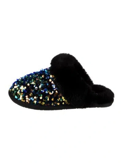 UGG Shearling Mules Blue Patterned Round-Toes with Sequin Embellishments Designer Fit: This designer typically runs true to size. | UGG Shearling Patterned Mules in Blue, Women's US 5 | 5