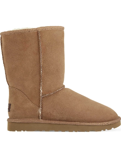With its twin–faced sheepskin, raw seams and reinforced upper, these short chestnut boots by UGG offer ultimate comfort and breathability. Cosy and stylish, you won't want to put your feet in any other footwear.Material LeatherLining and sole Leather and sheepskin lining, synthetic soleCare Use a clean, very soft, damp rag and wipe or blot gentlyBrown is equivalent to UGG shade Chestnut