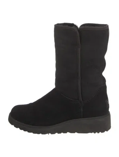 UGG Suede Mid-Calf Boots Black Square-Toes Exposed Zip Closure at Sides Designer Fit: This designer typically runs true to size. | UGG Suede Boots in Black, Women's US 8 | 8