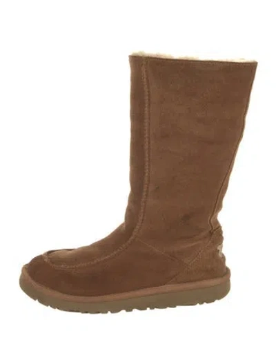 UGG Suede Mid-Calf Boots Brown Round-Toes Designer Fit: This designer typically runs true to size. | UGG Suede Boots in Brown, Women's 10.5