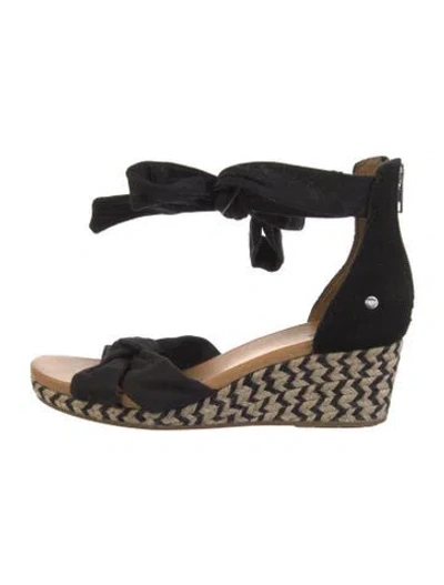 UGG Suede Espadrilles Black Platform Wrap-Around Straps Designer Fit: This designer typically runs true to size. | UGG Suede Espadrilles in Black, Women's 7